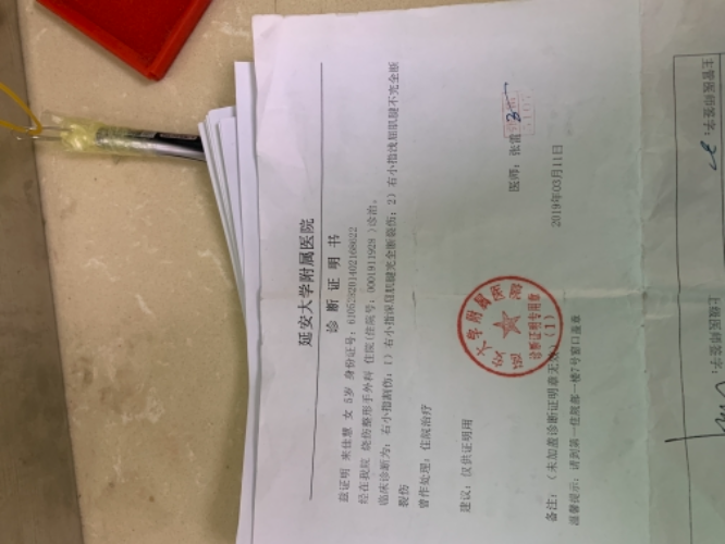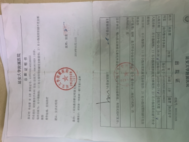 按照家長(zhǎng)的要求,受傷幼兒在班主任王思藝的陪同下,于當(dāng)晚8時(shí)被送至延安大學(xué)附屬醫(yī)院治療,診斷為右小指割傷并深淺后肌腿斷裂傷,當(dāng)晚10時(shí)作了手術(shù),術(shù)后住院洽療15天,先后共花費(fèi)醫(yī)藥費(fèi)9760元,其中家長(zhǎng)自付370元幼兒園墊付9390元。