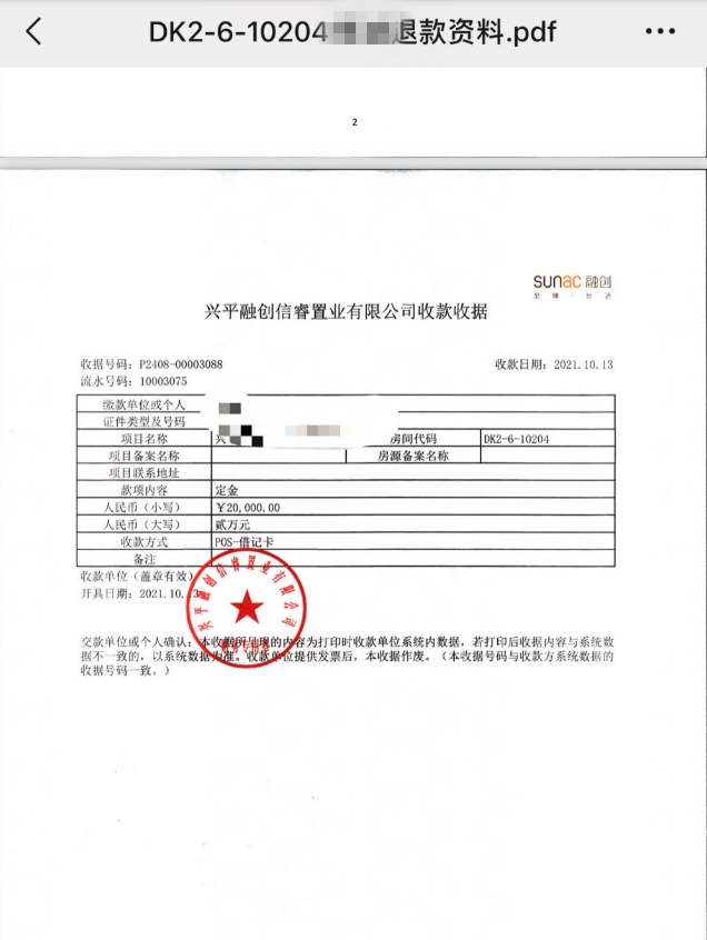 本人2021年10月在興平市融創(chuàng)西部灣項目購買小戶型房屋2套,交了38萬元房款首付,結果貸款沒有辦下來,地產承諾退房,退房手續(xù)齊全,各種資料完整,進入退款程序,承諾3個月退款,至今2025年仍沒有退款。希望有關部門督促地產還我血汗錢。